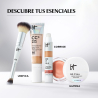 Desenvolupada amb cirurgians estètics i dermatòlegs, CC+ Nude Glow d'iT COSMETICS ofereix una cobertura mitjana proporcionant a la teva pell un acabat lluminós, cuida la teva pell amb un tractament antiedat i hidratant i la protegeix gràcies al filtre solar d'ampli espectre amb SPF 40+ UVA/UVB. Per a tot tipus de dones, sigui quina sigui la teva edat o tipus de pell. Disponible en 12 tons.
