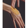 Per a una exfoliació més intensa, fes un massatge suaument sobre la pell seca i neta. Per a una textura més cremosa i oliosa, afegiu aigua per dissoldre els vidres naturals exfoliants.