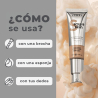 Aplica una petita quantitat de la base sobre el teu rostre estenent-la des del front fins al mentó i difumina amb els dits, una brotxa sintètica o una esponja.